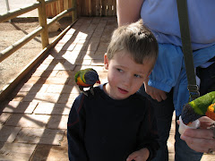 Ok, this post isn't a happened-only-once-this-morning kinda post, but a collection of the last 6 months of Jaden speak! As most of you know, Jaden is speech delayed. He has just started saying something other then his standard 3 things. The problem is that he has all sorts of issues from leaving off the initial consonant, to leaving off the end of the word, to making up his own idea of what should come in the middle. It turns out that Jadenese usually sounds like an aboriginal sailor. He knows that there is a sound that is supposed to go at the end of words that have a hard g or k sound (such as drink, milk, going, etc). He can't make the appropriate sound so he "clicks". He sounds like the movie "The God's Must be Crazy!" And he's GOOD. His clicks flow right into the words. If Bryan or I try to mimic him there is always a short pause between the rest of the word and the "click". Not so with him!! It sounds so funny! The other part of his speech is really not that funny, or at least it shouldn't be! He swears like a sailor!! Not on purpose, of course, but when you drop out all the consonants from a word, well...